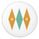 Este colorido pomo moderno de cerámica de mediados de siglo presenta diamantes azul turquesa y naranja con estrellas de color crema. ¡Es tan divertido añadirle a tu aparador o puesto nocturno!