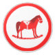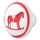 Este impresionante pomo de cerámica para Navidades presenta una imagen de arte digital de un lindo caballo balancín de estilo escandinavo. El caballo es rojo con un mané rojo oscuro, cola y pezuñas. El caballo amistoso sonríe. Tiene una silla blanca y riendas con motivos folclóricos escandinavos bonitos en la silla, incluyendo el sol, la luna y las estrellas y los corazones y flores. La base del mecedor es roja y está cubierta de hojas blancas de bonito. El diseño se inspiró en el caballo Dala sueco.