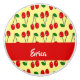 Pomo De Cerámica Nombre personalizado de cerezas rojas en amarillo