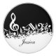Perfecto para los amantes de la música o músicos con un diseño moderno y llamativo que presenta notas musicales de color blanco y un gran trébol de fondo negro clásico. El diseño incluye texto de personalizable para un nombre o texto de su elección para crear un regalo musical único y personalizado.