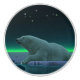 Un momento pacífico en la larga noche ártica. Un oso polar descansa en el borde de un área abierta en el hielo de la manada. Las luces del norte brillan a la distancia; las estrellas brillantes brillan sobre la cabeza. Los osos polares están en peligro. ¿Cuánto tiempo más podrán ocurrir escenas como esta? Por favor, ayuden a salvar a los osos polares de la extinción.