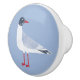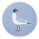 Una gaviota de gaviota con cabeza negra parada junto al océano azul. Perfecto para los amantes de los pájaros desagradables y de la costa. Arte original de Nic Squirrell. Ideal para tu barco o casa de playa.