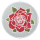 Cajero cerámico muy bonito y femenino o pomo de portapapeles a personalizar, con una rosa roja profunda, contorno blanco, sobre un fondo azul muy pálido que se puede cambiar si se desea. Parte de la colección "Corazones y Rosas" de Posh y Painterly.