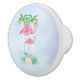 Pomo De Cerámica Pink Flamingo Momma & Baby with Palm Trete