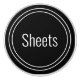 Este botón negro tiene texto en blanco. Puede editarlo para mostrar lo que hay dentro del cajón o gabinete. (Muestra: Hojas) Dos círculos blancos forman un borde para el texto.