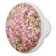 Pluma florida. Flores de arbustos de ciruela floridos también conocidos como almendros floridos. Flores festivas rosas con fondo azul y verde. Tema de primavera. Este es un ciruela, este es un almendro, este es un cerezo. Este árbol lo es todo. Se origina en China y se llama científicamente Louiseania triloba, Amygdalus triloba y Prunus triloba. Se considera una cereza de arbustos, algunos la llaman sakura. Plantas muy elegantes y decorativas. Otro conjunto de productos y souvenirs de relación de aspecto cuadrado.