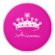 Este botón de cerámica de las rosas fuertes bonitas ofrece una corona rosada y blanca linda con los corazones. Personalice fácilmente este botón con el nombre o el otro texto.