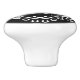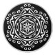Esta mandala blanca se sienta sobre un fondo negro. Parte de la colección Pympbys Mandala.
