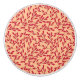 Seamless pattern with red leafy branches on a soft peach background. The design is intricate and organic, creating a warm, natural feel.