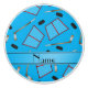 Ideas del regalo del hockey de la diversión. El nombre de encargo moderno y de moda se divierte el azul de cielo con los duendes maliciosos de hockey, los palillos de hockey y las redes de un hockey modelan el fondo y con la raya negra azul personalizada con apenas añada sus regalos conocidos o los regalos del monograma o sus iniciales para un regalo único. Ideas del regalo de los deportes para los hombres y muchachos y chicas. Ideal para los cumpleaños y como regalos del navidad.