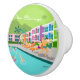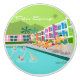 Esta atracción cerámica del Retro Palm Springs Hotel es tan fabulosa como kitschy. Su brillante y brillante fachada de arco iris queda eclipsada por las montañas de color verde limón y palmeras espectacularmente icónicas. Hay un fiesta en la piscina con bellezas para bañarse y hombres musculares tomando algo de vitamina D mientras observan el desempeño de los nadadores sincronizados. Parece que sólo uno de los nadadores conoce la rutina; los otros cuatro no están sincronizados. ¡Qué vergüenza para ellos! Lo único que haría que este diseño dijera "Palm Springs" más sería si estuviera escrito en las nubes. Oh, espera. ¡Lo es!
