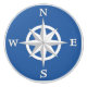 Botón en un diseño del rosa de compás de 8 puntos con un efecto aumentado, tridimensional leve - blanco en un fondo del azul de cobalto