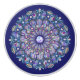 Dibujo de una vidriera de una antigua iglesia europea: una ventana rosa con toques de colores muy variados, como el azul, sobre un fondo azul marino. Entrada de diamantes de imitación azules. Este motivo también está disponible en rojo cardinal en mis colecciones de "rosácea roja cardinal".