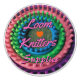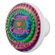 Sujete el espacio de la nave de punto con estos pernos de cerámica. Son pechos blancos con una imagen de coloridos telares redondos. Designe un cajón o un armario para sus suministros de tejido de telar.