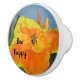 Añada una ráfaga de color y positividad a su habitación con este tirador de cajón o pomo de armario con un naranja brillante y una liga de canina amarilla. Esta flor está siendo visitada por una abeja grande que está rodeada por el patrón manchado de esta gran flor. El agua azul turbia y el follaje verde permiten a la flor ocupar el centro del escenario. "Bee Happy" se puede personalizar fácilmente para satisfacer tus necesidades.