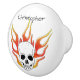 Add a bit of style to your cabinets and furniture in any room. This decorative ceramic knob with a skull design will do just that. You can customise this knob with any text. Should you require any help with customising then contact us through the message link on this page. Ceramic knob for cabinets and furniture with a fantasy art skull and flames design.