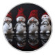 El diseño presenta una fotografía de figuras de muñecos de nieve en un fondo negro.