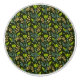 Seamless floral pattern with green leaves and buds on a dark background, featuring intricate blue and beige branches, evoking a natural, elegant feel.