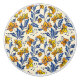 Seamless pattern of orange and yellow flowers with blue leaves on a beige background. The floral motif creates a lively, cheerful tone.