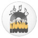 Ilustracion de diseño de texto "Music" de estilo retro con grabación de vinilo y decoración de notas musicales