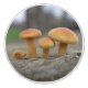 Esta impresionante perilla de cerámica muestra una bella fotografía detallada de 4 pequeñas taburetes amarillas que emergen de un tronco en un parque. El fondo está difuminado y los hongos son fotografiados a nivel para que veas el mundo desde su perspectiva.