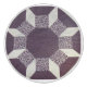 Bloque de patrón en el tejido "Spool" morado y blanco. Ocho sombrillas rotan alrededor de un centro de morado oscuro. Una flor morada es el "hilo" de la piscina, así como el marco de cada bloque.