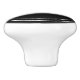 Este botón negro tiene texto en blanco. Puede editarlo para mostrar lo que hay dentro del cajón o gabinete. (Se muestra: Toallas) Dos círculos blancos forman un borde para el texto.