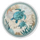 Dos, lindos, vintage, acuarela, turquesa, tortuga con una cosecha de vintage, blanco boho, bronceado y fondo abstracto acuático.