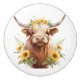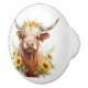 Pomo De Cerámica Vaca Highland con la flor amarilla
