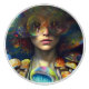 Un colorido diseño con temática de hongos trippy retro con una hermosa mujer