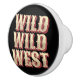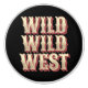 Diseño de texto "Wild Wild West" de estilo retro con letras rayadas en colores amarillo, rojo y beige