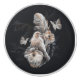 Pomo de impresión oscuro, pájaro, flor y pluma de