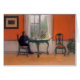 Niño pequeño mirando por la ventana a un jardín mientras su tarea se sienta delante de él. Bonito arte vintage del artista sueco Carl Larsson 1900.