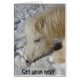 Pony Gelding blanco lindo en el invierno tomando una siesta en el cálido sol