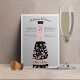 Las invitaciones a los ensayos festivos incluyen una botella de champán en negro suave y rosa rubor, adornada con los nombres de la pareja y la fecha del evento. Personalice con su boda el ensayo de la ceremonia y los detalles de la celebración, flanqueando el cuello de la botella.