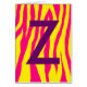Tarjeta de felicitación monogramada con papel de cebra amarillo y rosa.