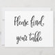 "Por Favor Encuentre Su Mesa" Letrero de Tarjeta d