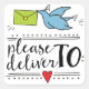 El diseño delgado y caprichoso de este pegatina hace una adición muy agradable a todas tus cartas, sobres y paquetes. El pájaro azul vuela cargando un sobre con un texto escrito con escobillas que dice, "por favor, entregue a:" en combinación con la tipografía moderna.