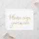 Un letrero elegante con la leyenda "Por favor firme" a mano