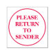Este sencillo diseño de sello de goma incluye el mensaje "POR FAVOR, REGRESE A ENVÍO". Podría utilizarse para indicar que el correo recibido se ha entregado a la dirección equivocada o a un destinatario desconocido, y debe devolverse al remitente.