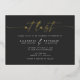 Esta moderna invitación a la boda paisajística incluye las palabras "por fin" en Relieve metalizado sobre un fondo oscuro, junto con el espacio de abajo para todos los detalles básicos sobre tu boda.