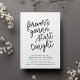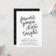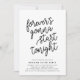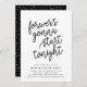 ¡Sigue adelante el fiesta! Nuestro moderno y casual boda después de invitaciones de fiesta en moda en blanco y negro función "para siempre empezará esta noche" en tipografía de escritura negra con los detalles de su fiesta debajo. Las tarjetas cambian a un patrón festivo de confeti en blanco y negro.