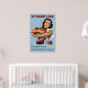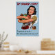 Nuestro encantador poster de la Segunda Guerra Mundial, restaurado y retocado, presenta a la famosa ama de casa, Por supuesto, puedo perfeccionar a una ama de casa norteamericana haciéndole un poco de esfuerzo en el frente de la guerra mientras cuelga cada verdura y fruta a la vista. Creada en 1944 por el artista Dick Williams para la Administración de Alimentos para la Guerra del Departamento de Agricultura de los Estados Unidos, la pintura muestra a una mujer magnífica en su cocina con una expresión muy sorprendente en su cara, mientras sostiene tres grandes jarras de vegetales de vidrio en sus brazos, con tres jarras más de aspecto delicioso debajo. ¡Abejas, verduras, tomates, los ha enlatado a todos! Nuestra ama de casa de ojos azules está usando un delantal adornado con flores para reforzar su condición de ama de casa. Debajo de la leyenda "¡Por supuesto que puedo!" están las palabras "¡Soy tan patriótico como puede ser y los puntos de racionamiento no me preocuparán!"