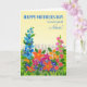 Una carta muy bonito del Día de la Madre para tu sobrina, con una flor cama de colores vivos, hecha de un collage de papel pintado a mano. Las flores son altas y pequeñas, rojas, rosas, naranjas y azules, con una valla blanca detrás de ellas, sobre un fondo amarillo brillante. El saludo de portada con letras azules profundas es "¡FELIZ DÍA DE LA MADRE a una sobrina muy especial!" El mensaje interno es sólo una sugerencia y puede cambiarlo o eliminarlo fácilmente si lo desea.