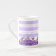 El Flor-de--Mes y el Birthstone para febrero en una taza rayada. El par de la flor y de la gema para febrero es el violeta y la amatista. La taza tiene el significado del flor-de--mes y del birthstone. Añada un monograma opcional - o suprima ese detalle en conjunto.