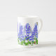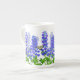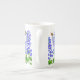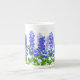 El diseño original de la bella arte de Delphinium o las flores y las mariposas de Larkspur del artista Carolyn McFann del estudio de ronroneo de dos gatos imprimió en una taza de la porcelana de hueso de la calidad para las fans de la flor del jardín.