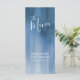 Hermoso menú graduado de cena de boda o tarjeta de menú de evento especial pintado con tinte gris azul. Edite este menú de 4 platos con sus propias palabras. Menú de arte con lavado moderno gris azulado simple y moderno. Ideal para bodas o eventos grises azules. También disponible en papel de cartulina más grueso y es parte de la colección de bodas de arte abstracto gris azul. © Diseño y pintura original de Sarah Trett. www.sarahtrett.com para www.mylittleedenweddings.com en zazzle.