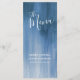 Hermoso menú de cena de boda o tarjeta de menú para eventos especiales pintado con tinte gris azulado graduado. Edite este menú de 4 platos con sus propias palabras. Menú de arte con lavado moderno gris azulado suave, simple y moderno. Ideal para bodas o eventos grises azules. También disponible en cartulina más gruesa y es parte de la colección de bodas de arte abstracto gris azul. © Diseño y pintura original de Sarah Trett. www.sarahtrett.com para www.mylittleedenweddings.com en zazzle.