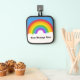 Agregue un nombre o su propio eslogan inteligente para crear su propio personalizado. Un divertido gráfico clásico del arco iris se coloca sobre un fondo azul con nubes blancas debajo. Tu mensaje está escrito en negro contra las nubes blancas.