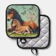 Caballo madre y su puerco descansando en un floreciente prado primaveral rodeado de mariposas. Una visión sentimental e idílica que evoca sentimientos de cuidado, armonía y la belleza de la renovación de la naturaleza.